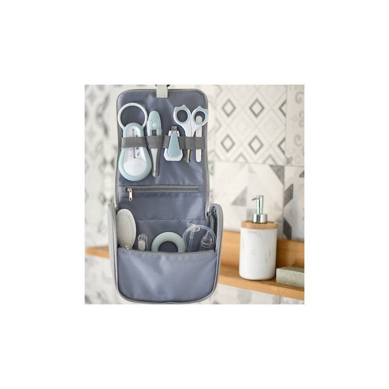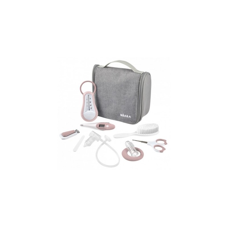 Neceser de aseo en color gris con rosa o azul de la marca Beaba.