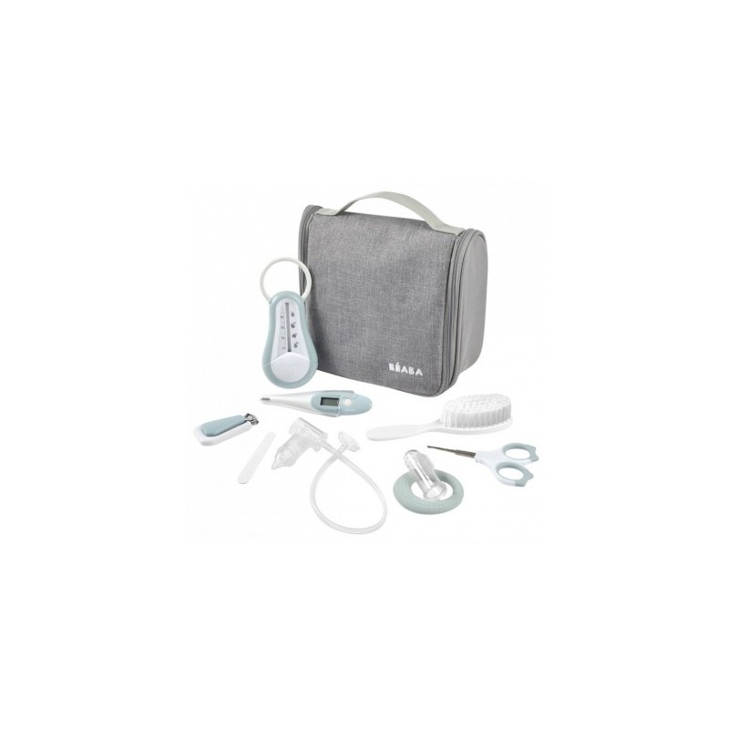 Termómetro de baño, termómetro digital, tijeras, corta-uñas, cepillo para el pelo, mordedor, aliviador encías, aspirador nasal manual, lima de uñas.