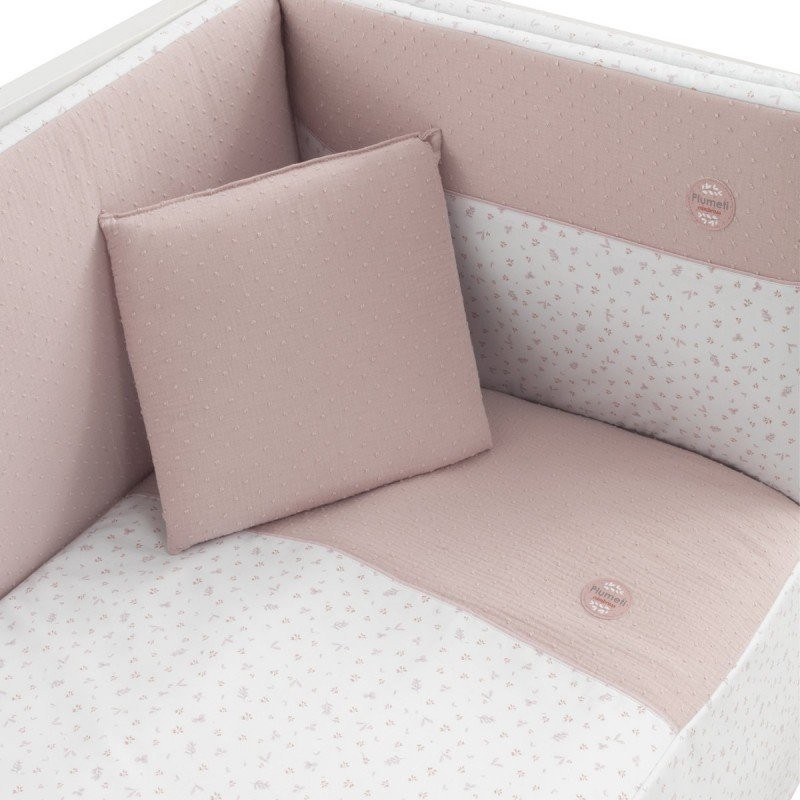 Colcha + Protector Cuna de 60 Plumeti Rosa